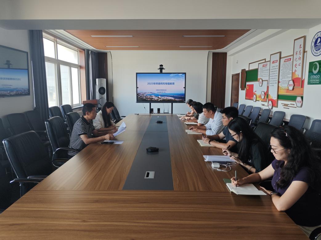 9月10日,中新合作公司党总支在公司会议室召开师德师风专题教育大会,公司全体教职工参加会议。会议由党总支书记孙祥山主持。